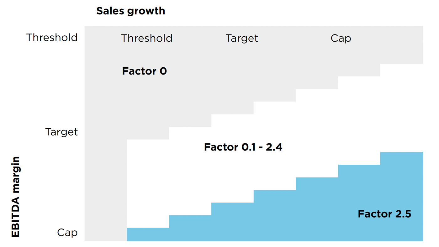 Short-term variable cash compensation | Annual bonus in cash | Reward annual performance | 1 year | Sales growth |