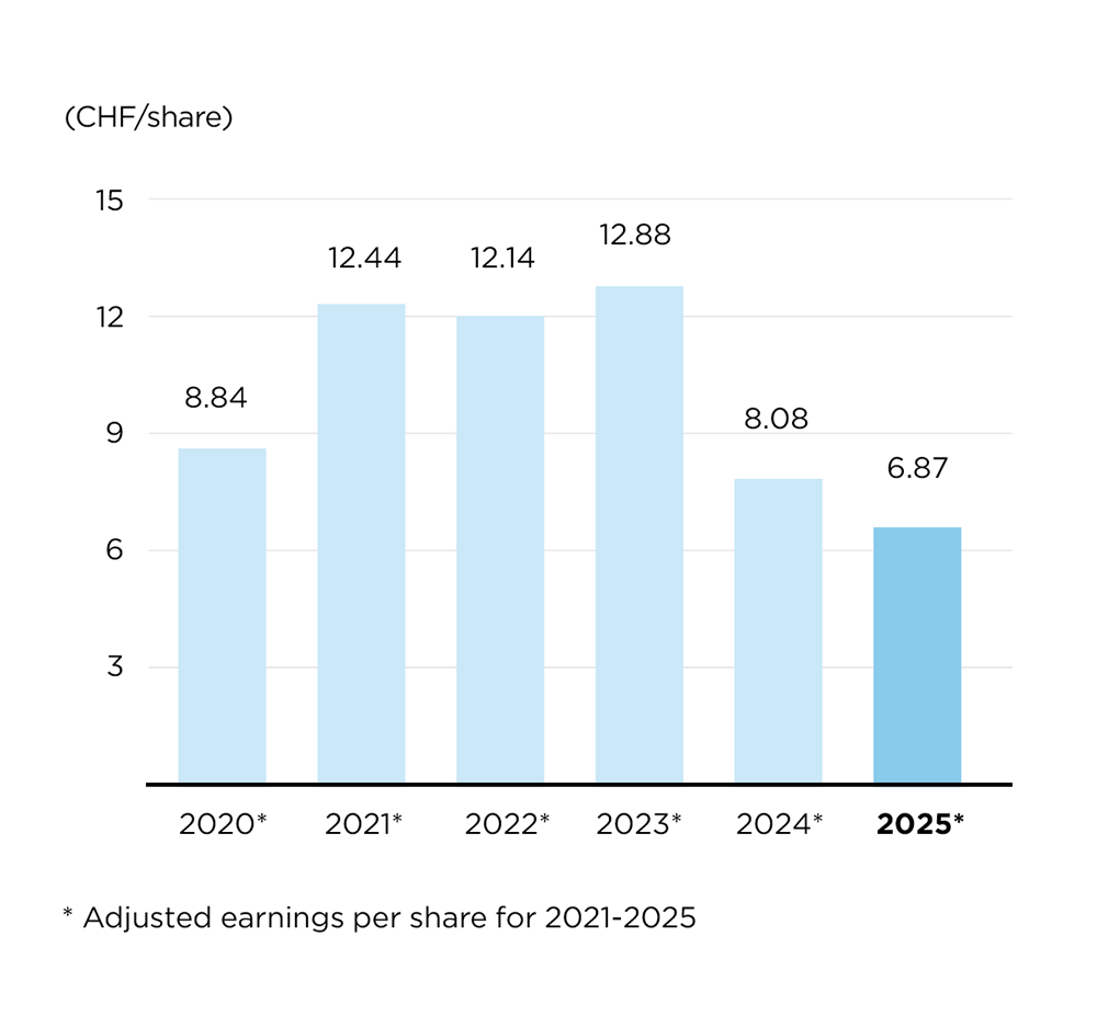 - The calculation of 2024 adjusted net profit and adjusted earnings per share excludes restructuring costs as well as acquisition- and integration-related costs (+CHF 16.4 million) and accumulated amortization of acquired intangible assets (+CHF 19.0 million) and they were calculated with the reported Group tax rate of 13.6%.
