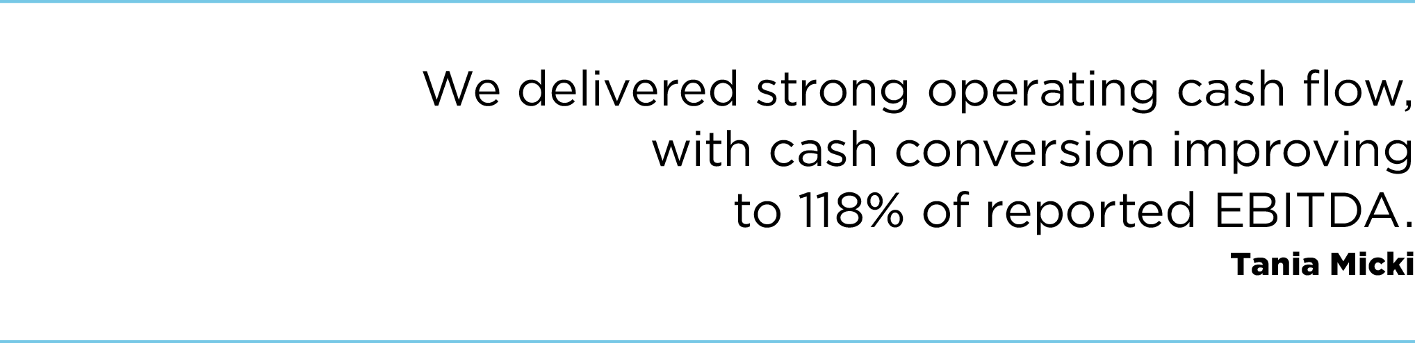 Adjusted EBITDA1 (operating profit before depreciation and amortization) was CHF 142.1 million, down from CHF 164.4 million in 2024. The adjusted EBITDA margin decreased to 16.1% of sales (2024: 17.6%). Margins were significantly impacted by adverse foreign exchange effects (-130 basis points) and tariffs (-70 basis points), partly offset by underlying improvements (+50 basis points). Excluding the combined 200 basis point headwind from foreign exchange effects and tariffs, the adjusted EBITDA margin was 18.1%, in line with the outlook communicated on March 12, 2025. Reported EBITDA was CHF 117.1 million, compared to CHF 148.0 million in the prior year, corresponding to reported margins of 13.3% and 15.8%, respectively.