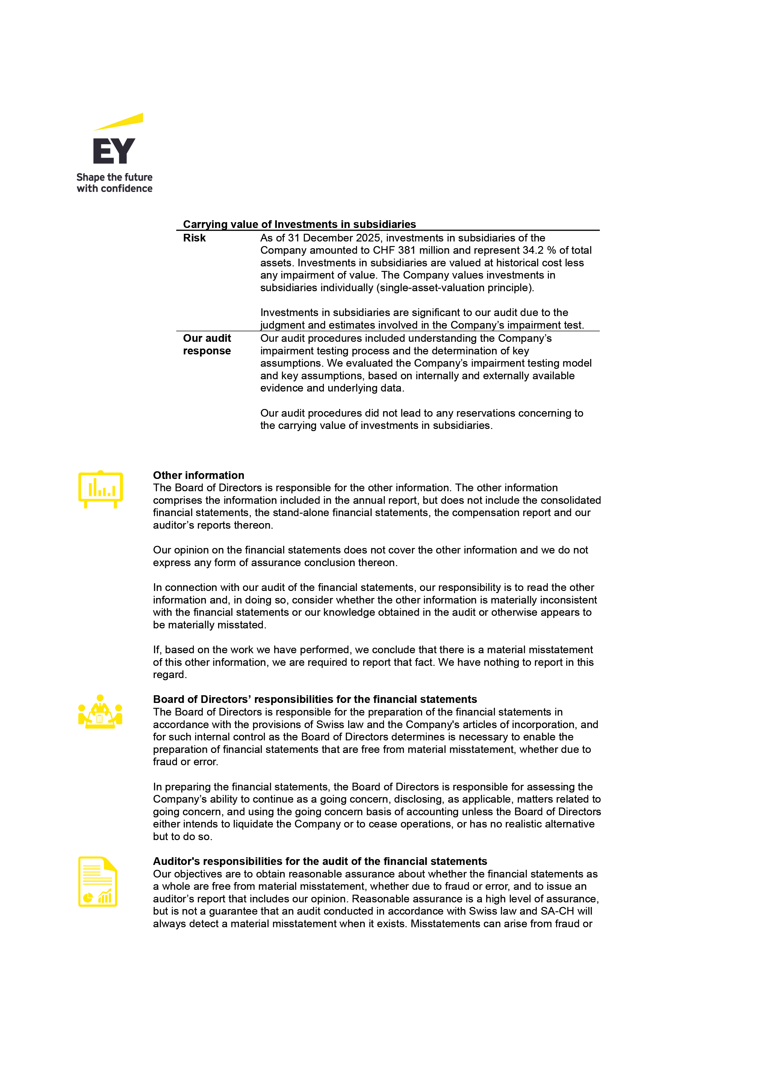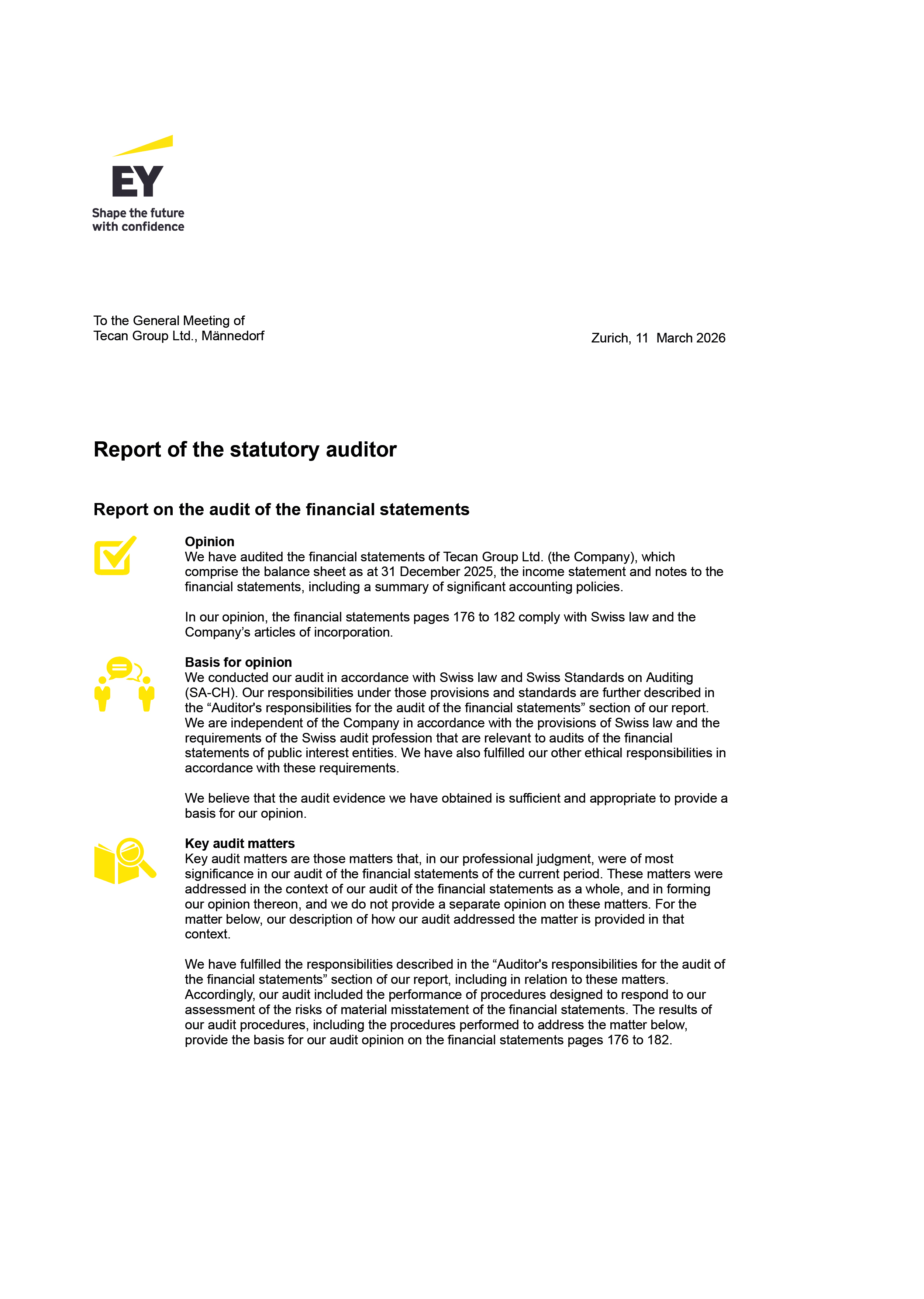 Statutory auditor`s report on the financial statements of Tecan Group Ltd.