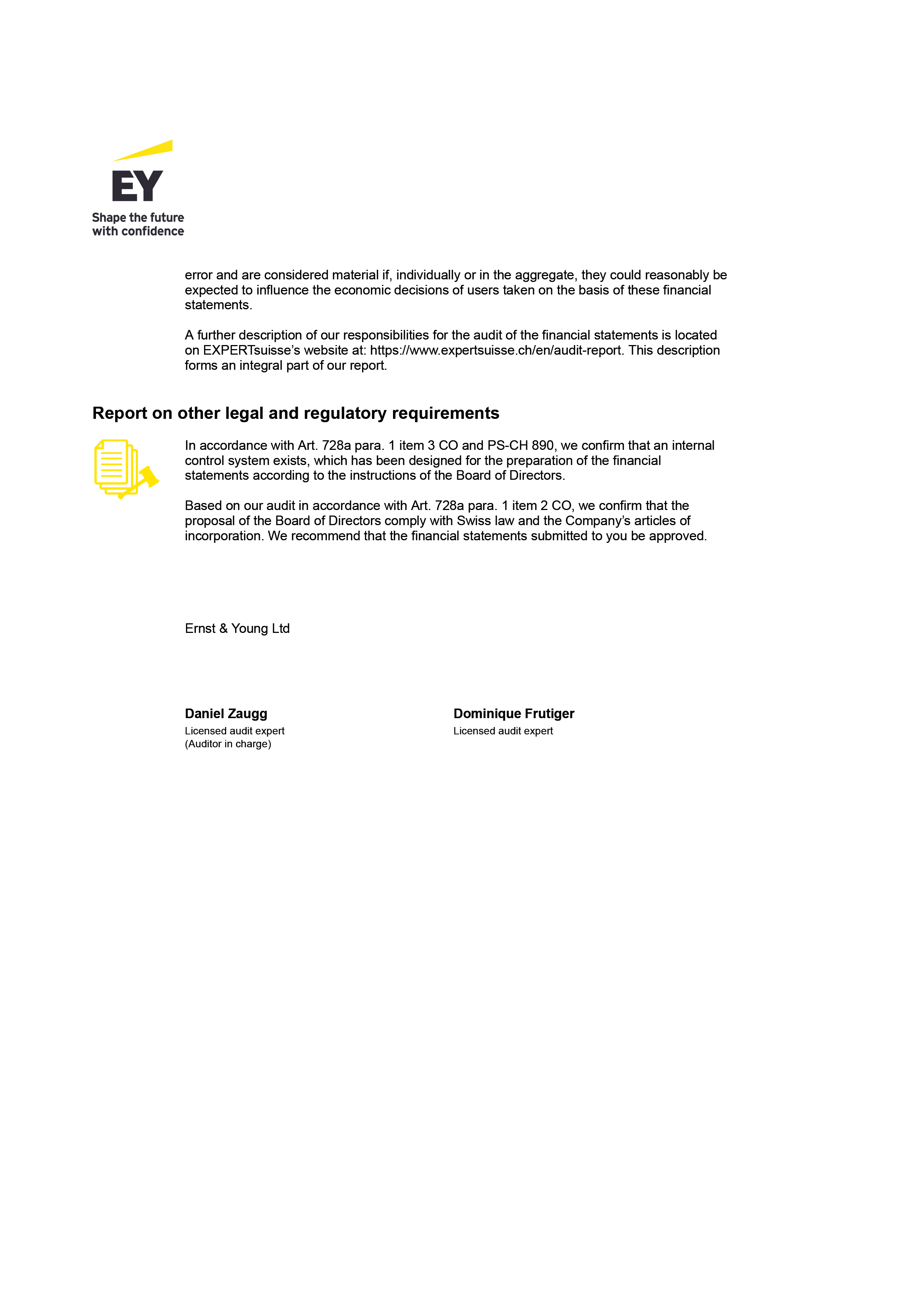 STATUTORY AUDITOR`S REPORT ON THE FINANCIAL STATEMENTS OF TECAN GROUP LTD.
