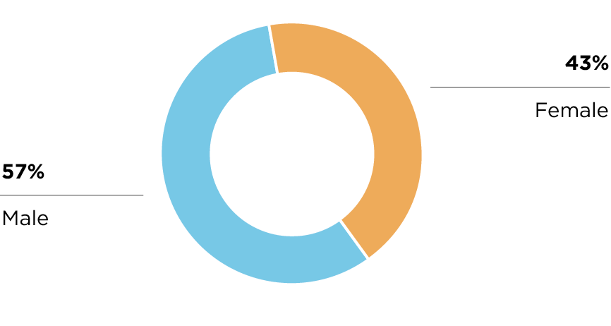 | Total global employees | 65.51% | 2,165 | 3,305 |